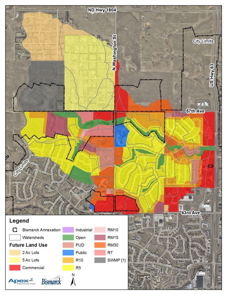 After the second phase of construction was completed, eight regional detention facilities (moving approximately 144,000 yd3 of material) and 2,300 ft of large-diameter storm sewer were installed to manage surface water in northwest Bismarck. A FEMA LOMR was recently approved for the second phase.